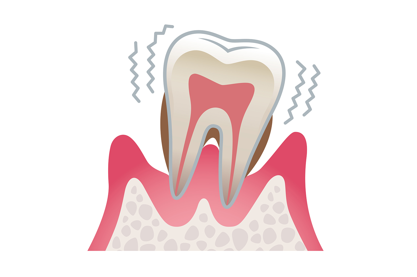 歯周病は、顎の骨を徐々に溶かしていく病気です。歯周病の症状が進行すると、歯を支える骨が次第に失われてしまいます。しかし、骨の状態は外からは確認できないため、X線検査を用いた診断が必要です。